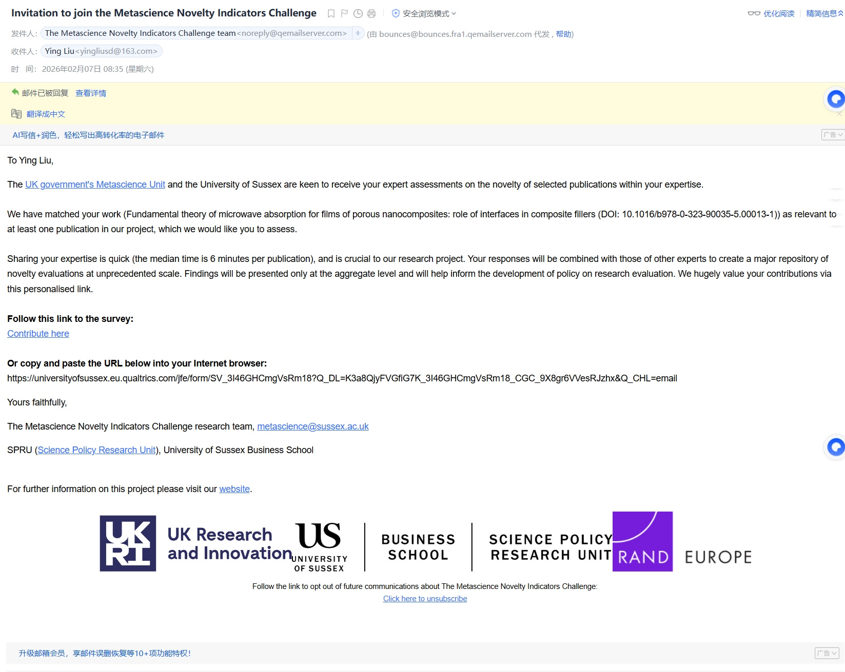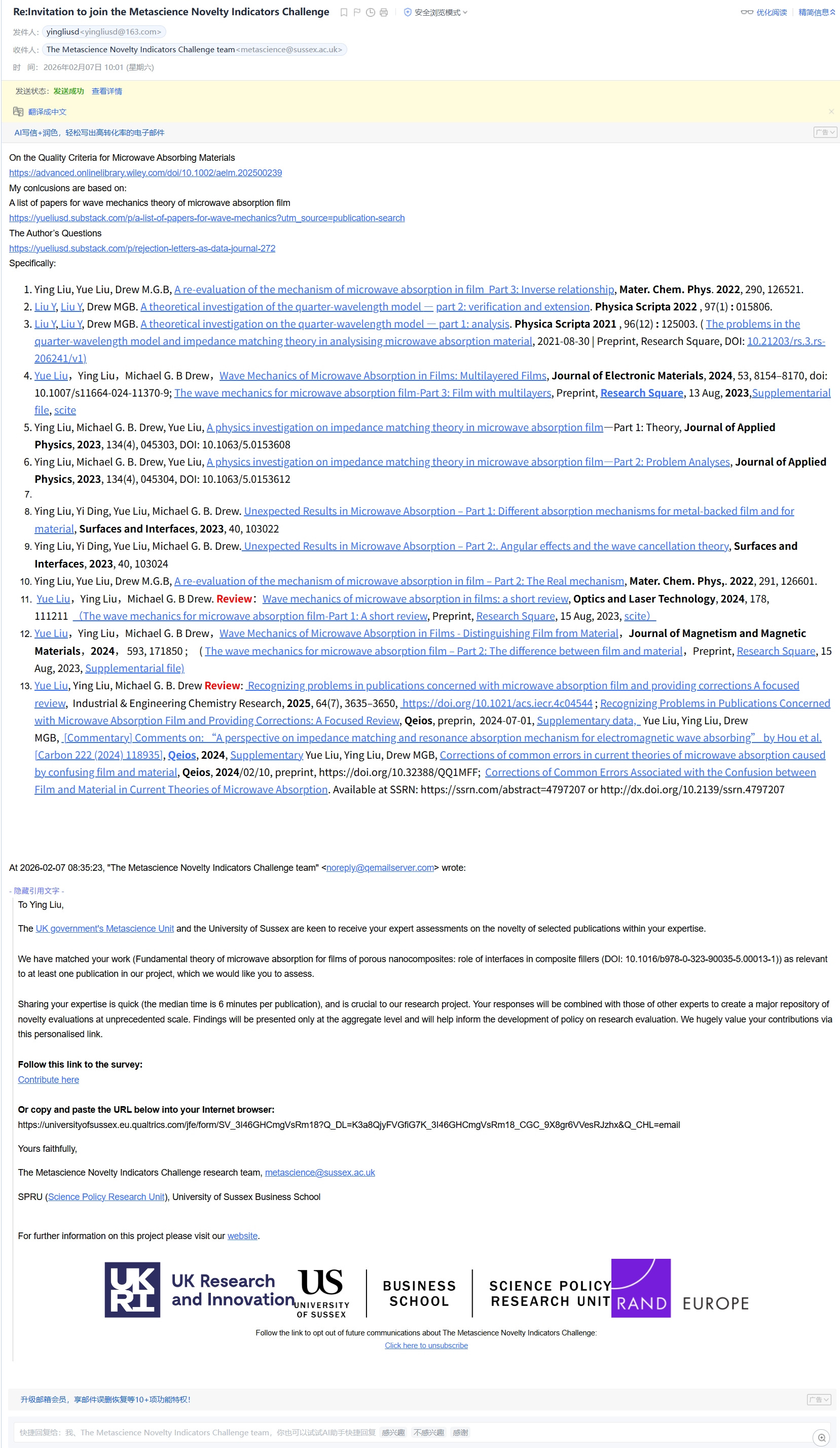 “Metascience” <metascience@sussex.ac.uk> wrote: